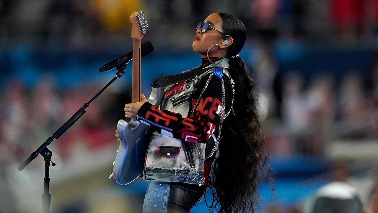While Grammy-winning artist H.E.R. was strumming her heart out on the guitar ahead of the 2021 Super Bowl, viewers’ eyes were focused on some apparent product placement going on behind her.