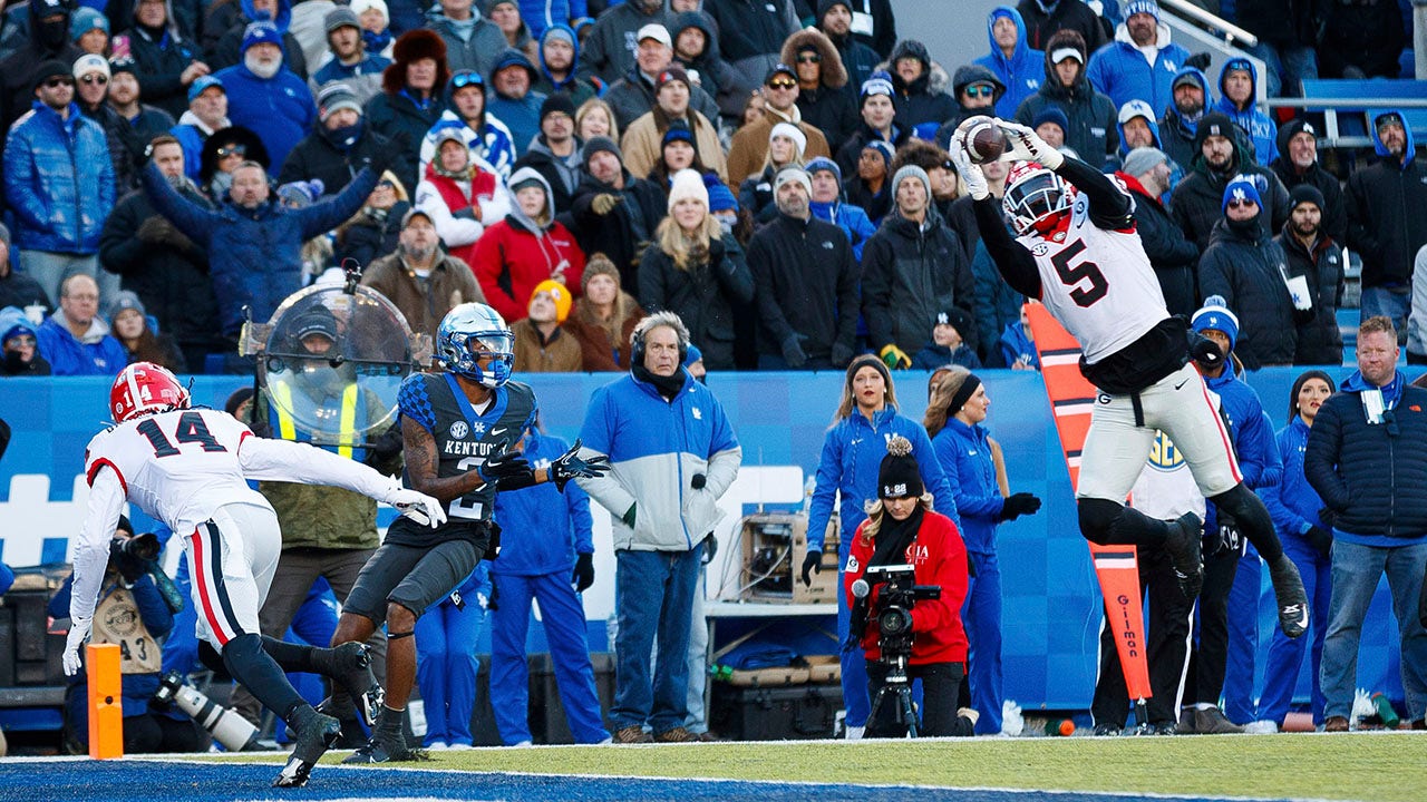 Georgia outgained Kentucky on the ground 247-89. Georgia's 25-year-old quarterback Stetson Bennett completed 13 of his 19 pass attempts for 116 yards. He threw one interception.