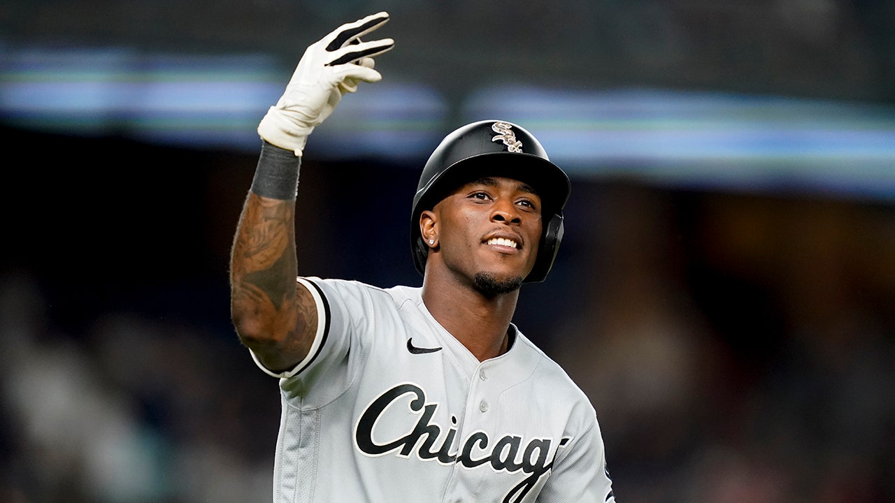 Chicago White Sox' Tim Anderson reacts towards the crowd while running the bases after hitting a three-run home run off New York Yankees relief pitcher Miguel Castro in the eighth inning of the second baseball game of a doubleheader, Sunday, May 22, 2022, in New York. (AP Photo/John Minchillo)